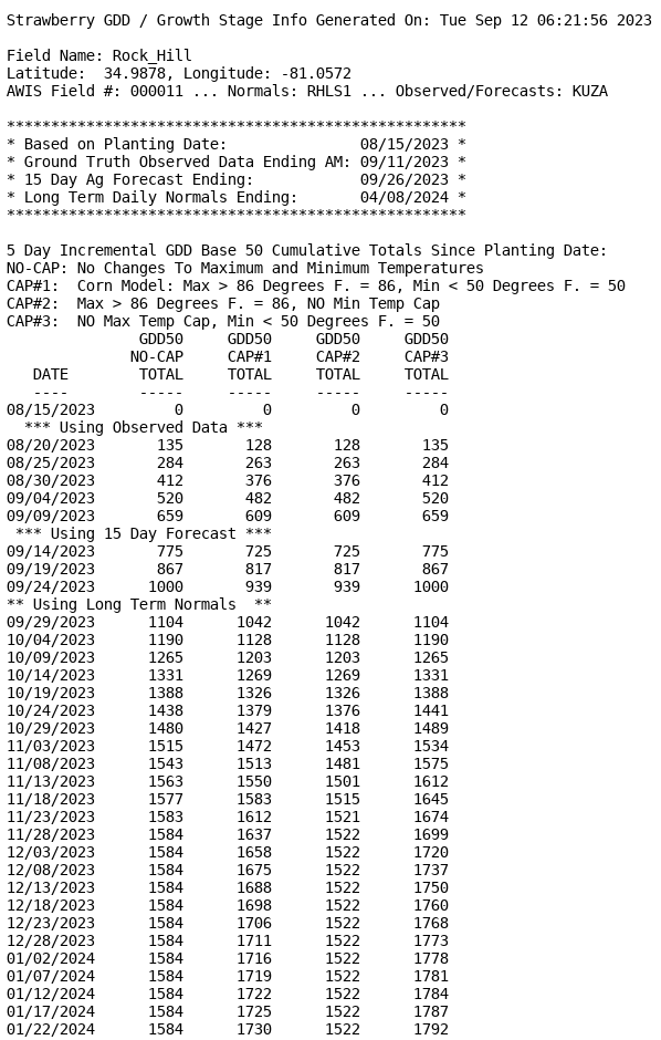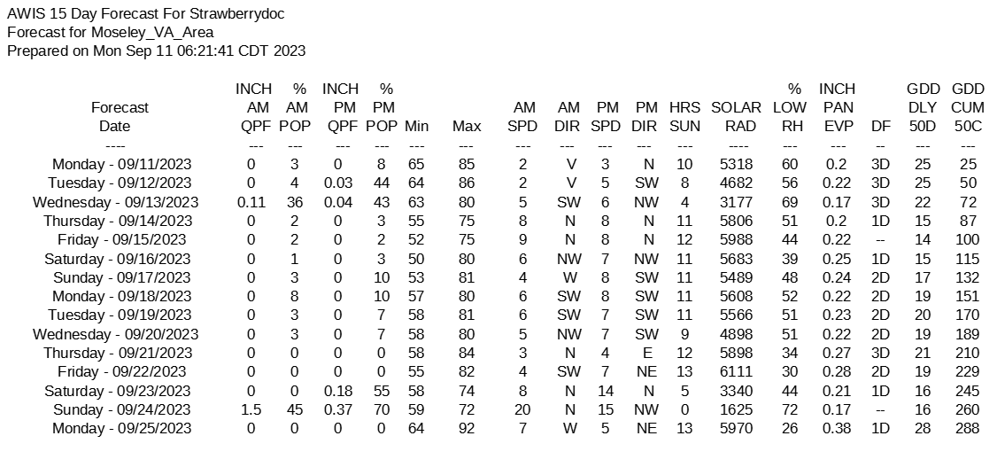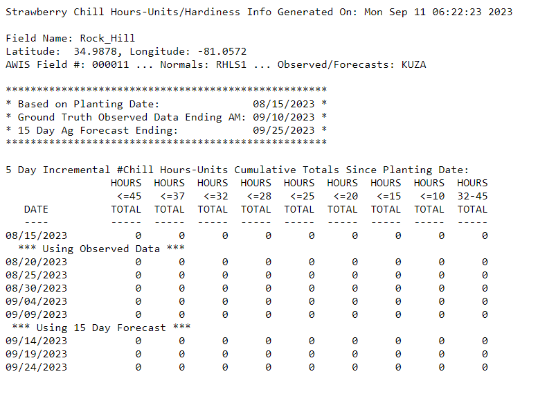 Here is what is currently provided as part of our Ag Weather Package for Strawberry Growers: