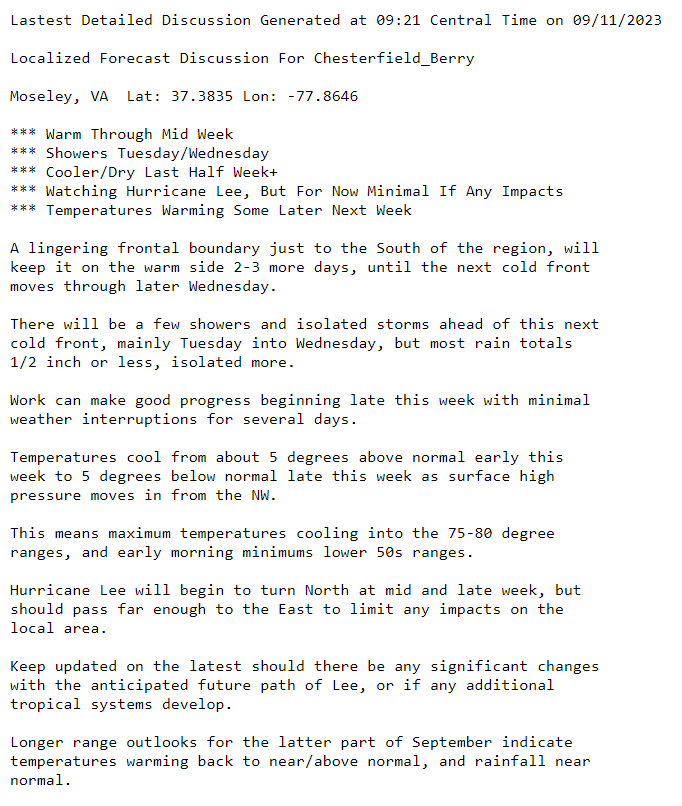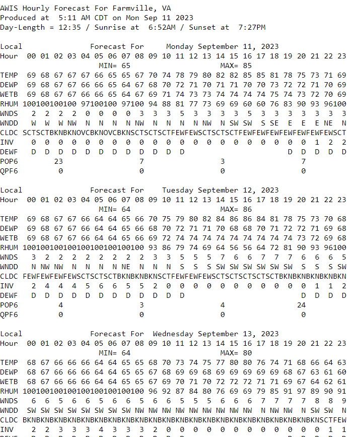 As part of this service, you will receive an email each day with the updated weather observation and forecast services mentioned above. Images of that email and some of its contents are included to your left.